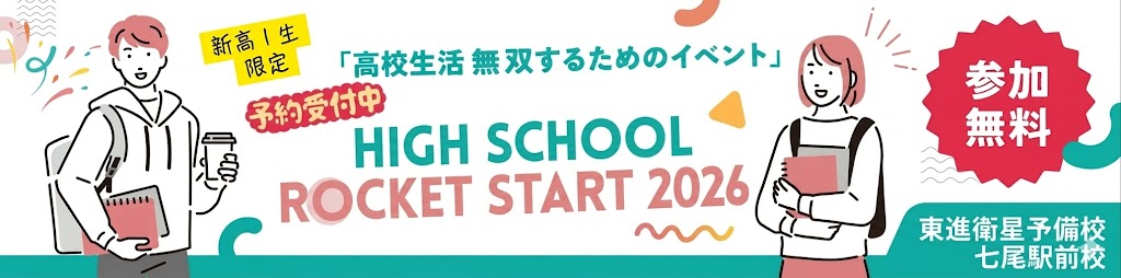 【新高1生限定・参加無料】高校生活を無双するためのイベント「HIGH SCHOOL ROCKET START 2026」 未分類 高校入学を控えた今、こんな悩みや不安はありませんか? そんな不安を吹き飛ばし、最初の中間テストで数学で学年トップ10%(上位20人)に入り、高校生活の主導権を握るためのイベントが「HIGH SCHOOL ROCKET S […] 続きを読む
